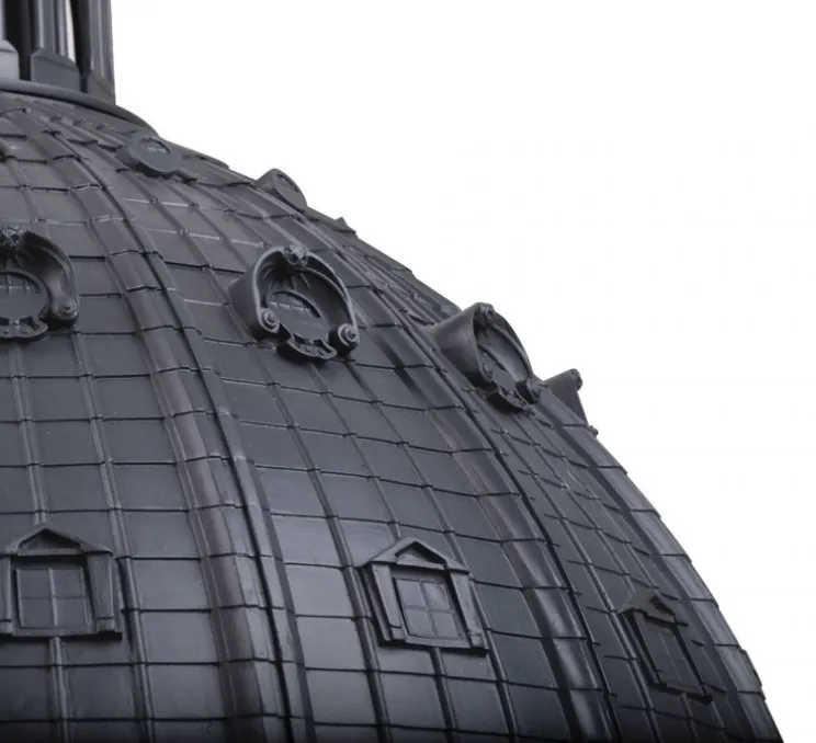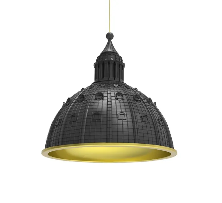 Faite en résine, la suspension Cupolone reproduit avec précision les détails architecturaux du dôme et nous transporte au cœur de la Ville éternelle. L’intérieur doré de la suspension permet d’émettre une lumière chaude et chalereuse.
