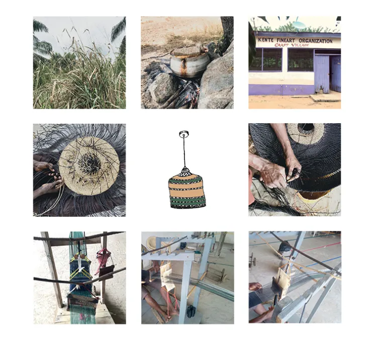 Abat-jour fabriqué au Ghana et assemblage réalisé en France.