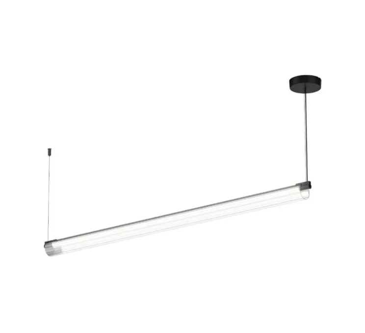 Composée d’une fine barre lumineuse suspendue par des câbles discrets, elle offre un éclairage homogène et direct. Son allure épurée et sa légèreté visuelle en font une pièce idéale pour les intérieurs contemporains.