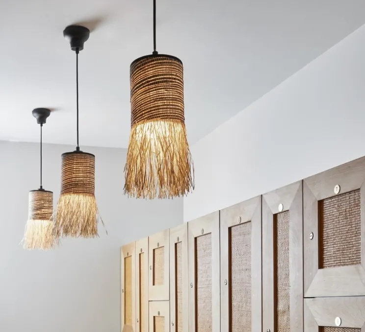 La suspension Formentera évoque tout un univers bohème chic sous influences méditerranéennes. Le mix du bana et raphia, frangés à la main dans leur atelier, apportent chaleur, volume et donnent vie à des pièces d’exception!