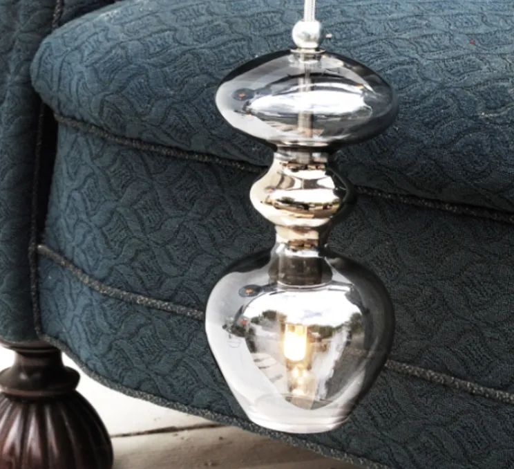 Le design translucide à la teinte fumé et aux courbes féminines, est embelli par un cerclage platine sur le milieu de la lampe.Le câble d’une longueur de 2 mètres permet une installation facile.
