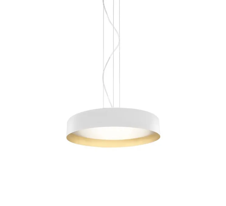 Ce luminaire cylindrique, avec son extérieur blanc et son intérieur doré, crée un contraste subtil mais sophistiqué. La finition dorée à l’intérieur diffuse une lumière chaleureuse et enveloppante. Ginevra est un choix parfait pour ceux qui recherchent un éclairage à la fois fonctionnel et esthétique.