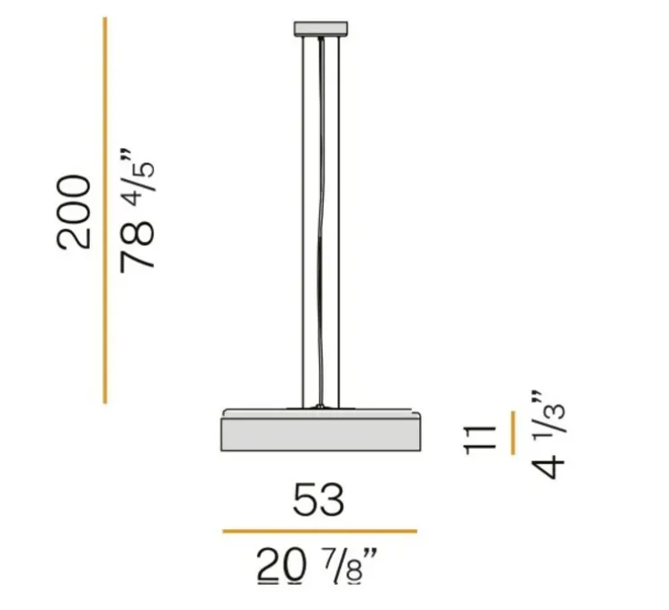La suspension mesure 53cm de diamètre pour 11cm de hauteur. La source lumineuse 3000K, 2916lm est fournie.