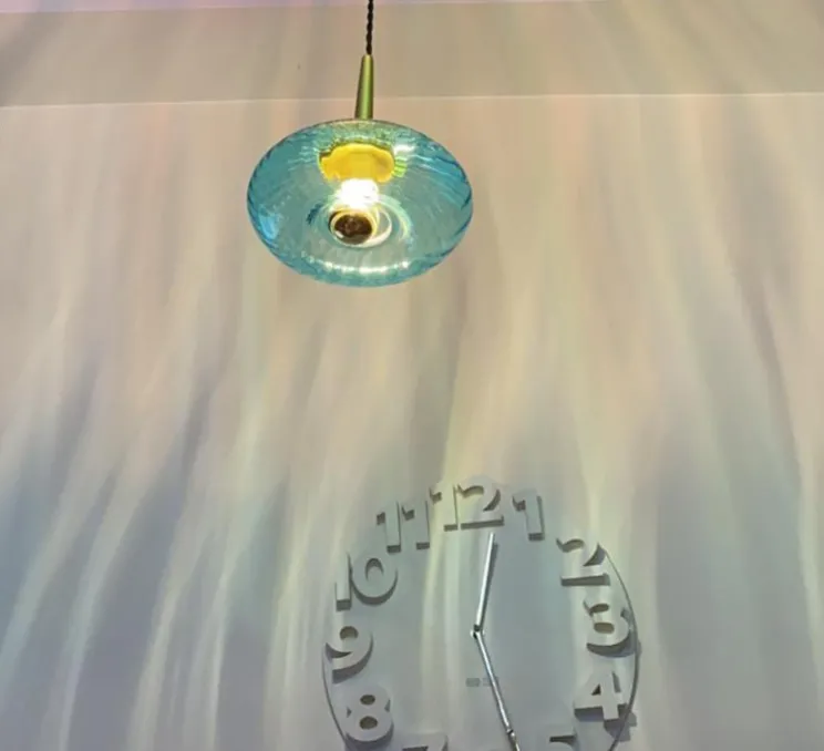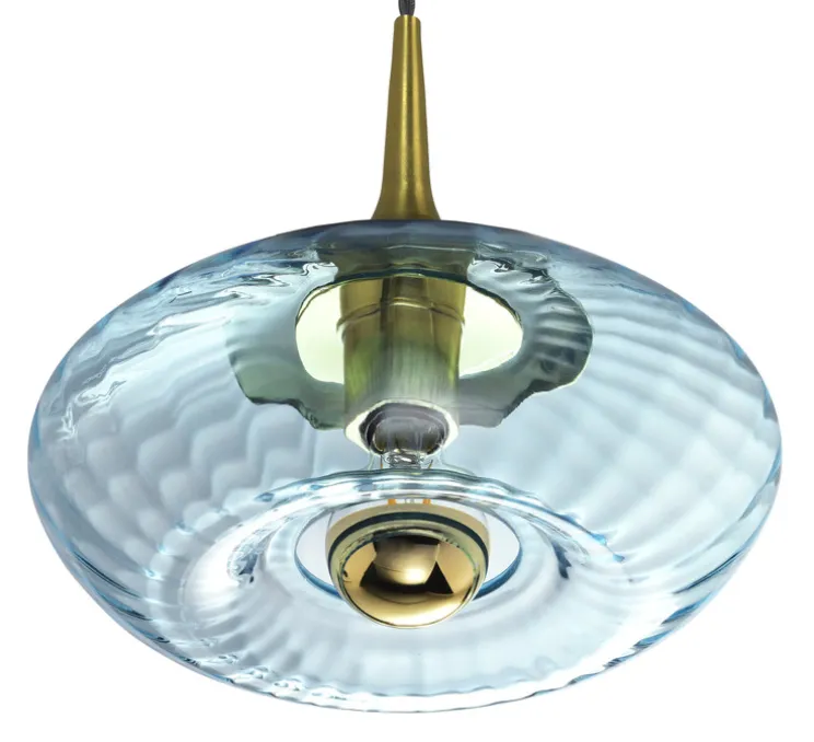 Avec son diffuseur texturé de couleur aigue-marine, cette suspension diffuse une lumière originale et enveloppante. Les stries du verre créent un jeu de lumière dynamique, tandis que la base en laiton ajoute une note intemporelle et chic. Ce modèle s’intègre parfaitement dans des décors à la fois vintage et modernes.