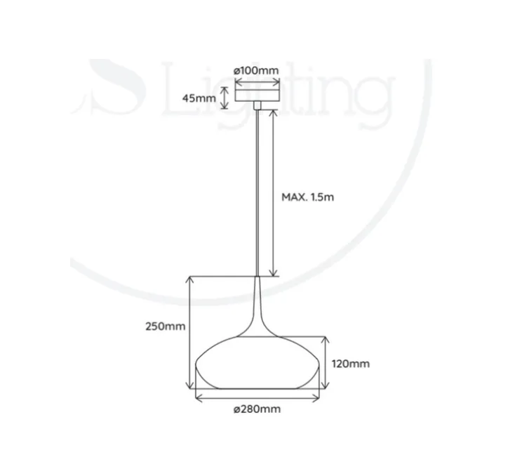 La suspension Grace est équipée d’une source lumineuse A60 dorée incluse, avec un éclairage diffus à 360°. Le câble noir de 1,5 mètre s’accorde à la suspension pour un rendu visuel équilibré.