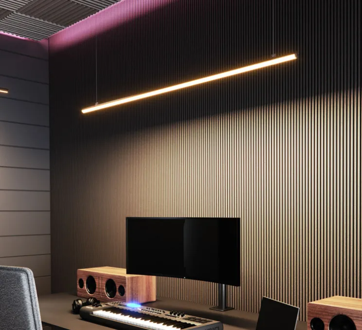 Grip est équipée d’une source LED intégrée, offrant une puissance de 26W à 46W selon les modèles. Elle délivre un flux lumineux de 3399 lumens avec une température de couleur de 3000K, idéale pour créer une lumière chaleureuse. Son diffuseur opal garantit un éclairage direct et uniforme, avec un indice de rendu des couleurs (IRC) supérieur à 90. Le luminaire présente une protection IP40 et n’est pas dimmable.