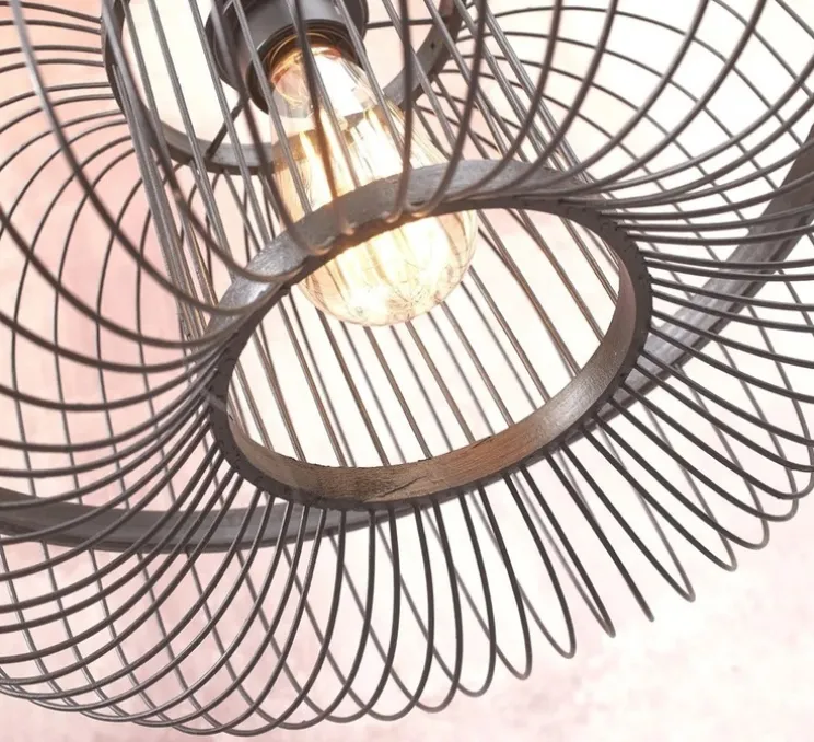 L’abat-jour mesure 38 cm de diamètre et 25 cm de hauteur. Le câble, en textile noir, mesure 2 mètres de long. Il est ajustable selon vos besoins.