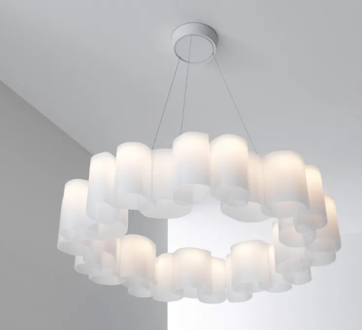 La collection Honey joue sur la répétition d’un élément modulaire, créant des configurations linéaires ou circulaires fascinantes. Les modules en polycarbonate blanc brillant moulé par injection forment une structure harmonieuse. La lumière chaude est diffusée à la fois directement et indirectement, créant un éclairage doux et chaleureux dans la pièce. Les opales ondulées tamisent la lumière, ajoutant des nuances fascinantes à l’ambiance.