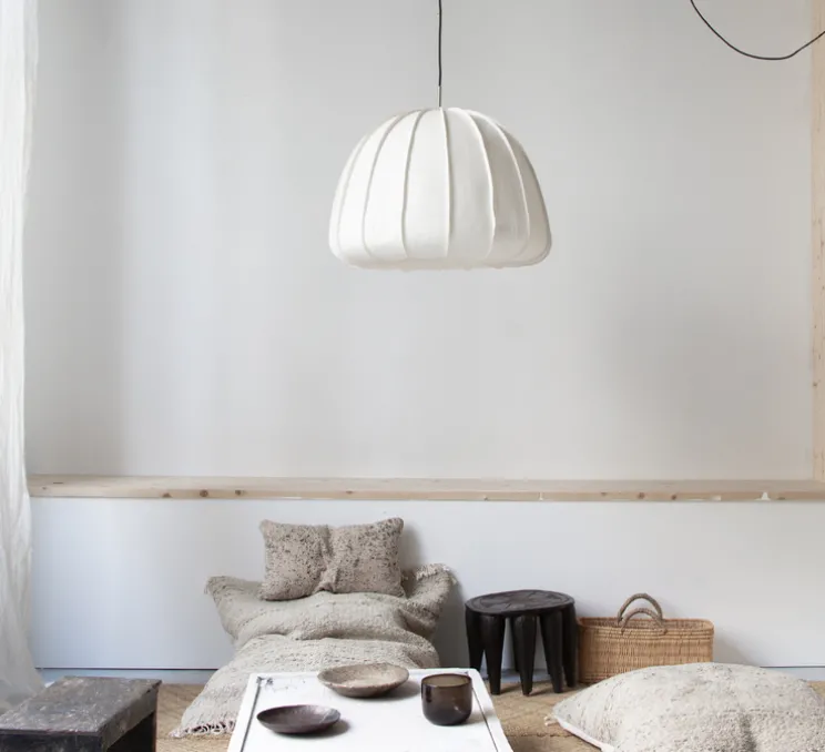 La suspension Hozuki L avec son abat-jour en papier est très décorative ! Pour des grands espaces intérieurs, c’est le luminaire idéal pour apporter une ambiance cocooning et chaleureuse qui sent bon les vacances.