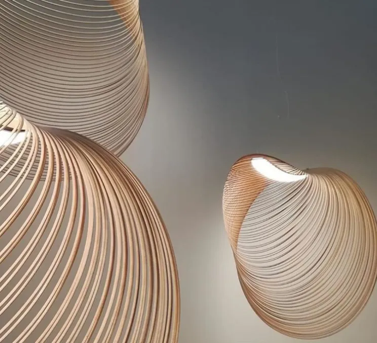 Cette suspension est idéale dans une pièce à vivre telle qu’une chambre, un salon mais également dans une salle de réception dans un hôtel ou un restaurant. En effet, ses courbes apportent un côté très contemporain tout en réchauffant l’ambiance grâce à sa couleur naturelle : elle pourrait très bien convenir au-dessus d’une grande table ! Vous pouvez également en suspendre plusieurs ensembles ! Sa lumière est dimmable en coupure de phase pour varier l’intensité de la lumière.