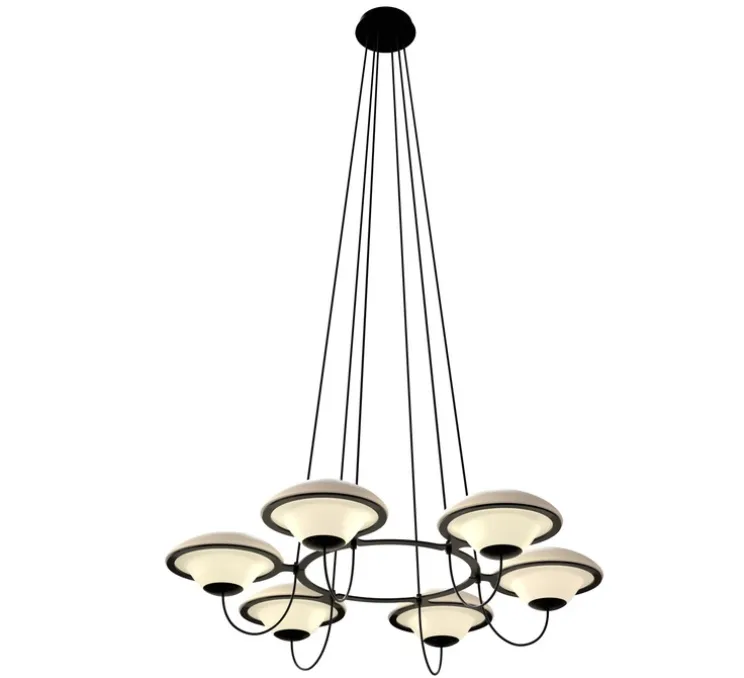 Avec ses lumières « ufoesques » qui évoquent l’imaginaire des comics américains et des films de science-fiction des années 50 et 60, ITA offre une présence forte. Inspiré par l’iconographie des soucoupes volantes, ce lustre se compose de six modules lumineux, flottant sans ancrage sur des cercles métalliques. Sa forme biomorphique et son équilibre spatial rappellent les lumières totémiques des années soixante italiennes, créant une impression de lévitation opalescente dans votre espace. Le lustre ITA se distingue par son design profilé et son allure aérienne, apportant une touche de fantaisie nostalgique à tout intérieur.