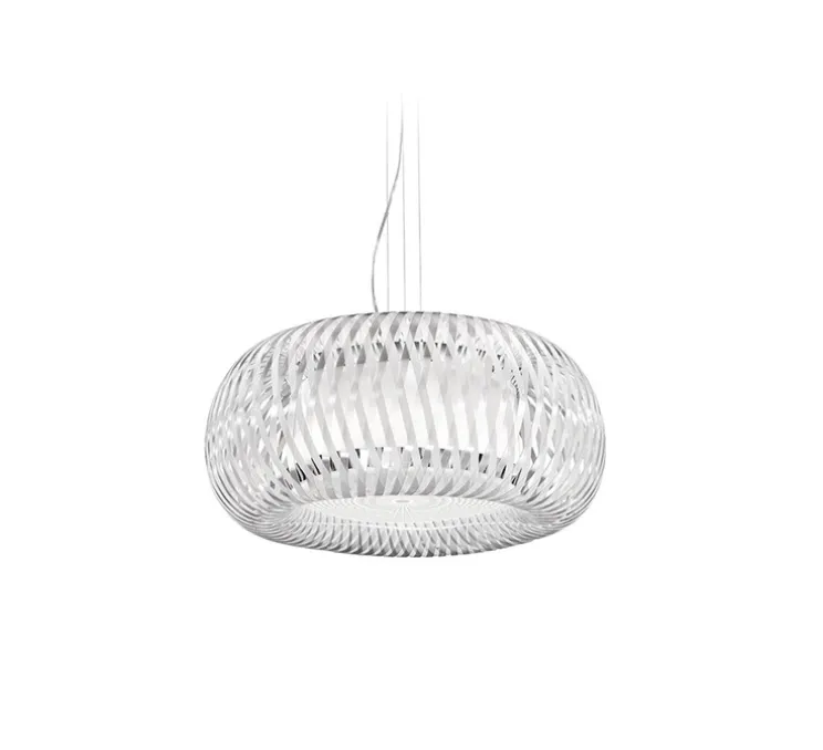 Voici la suspension Kalatos de la maison italienne Slamp, cette suspension est contemporaine de par sa couleur blanche et de par ses formes géométriques qui la compose.