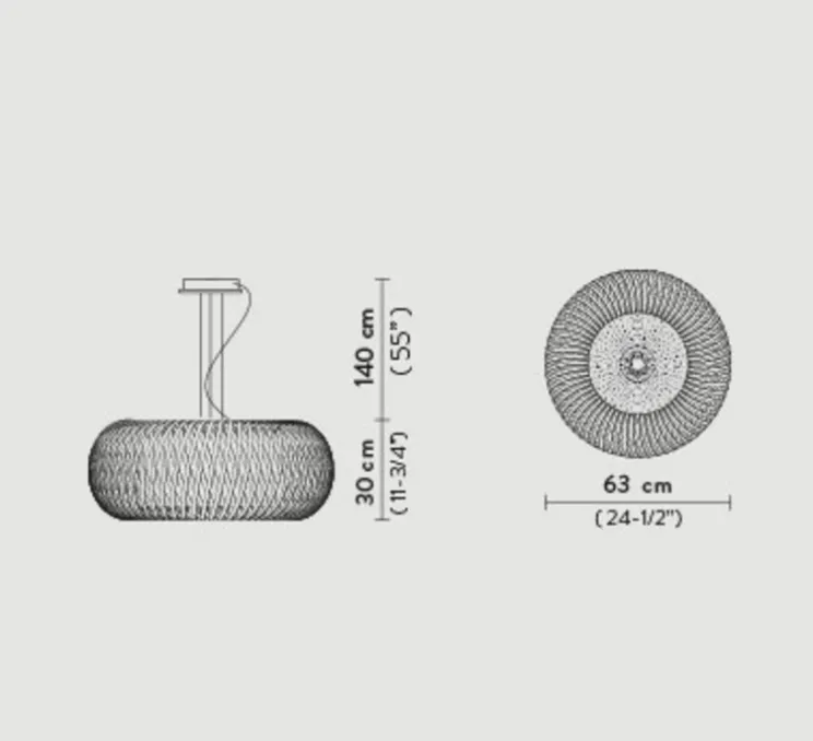 La suspension Kalatos mesure 30cm de hauteur pour 63cm de diamètre. Il existe une version noire et or à l’intérieur, et une version plafonnier. N’hésitez pas à les assembler ensemble pour des compositions incroyables !
