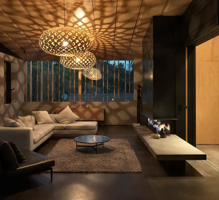Fabriqué en bambou naturel, ce luminaire évoque une esthétique organique et intemporelle.