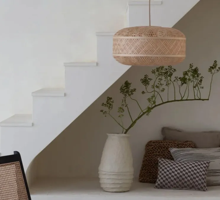 La suspension Langkawi séduit par sa forme circulaire et sa couleur naturelle. Elle diffuse une atmosphère chaleureuse et apaisante, idéale pour des espaces tels que le salon, la salle à manger ou un bureau. Son éclairage indirect ajoute une note conviviale et douce, et pour accentuer son style, elle se marie parfaitement avec des matériaux bruts comme le bois ou des teintes neutres, créant ainsi un cadre harmonieux.