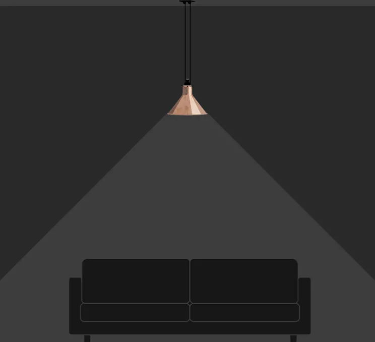 Modèle présenté : N°322 + abat-jour conique XL cuivre brut/intérieur cuivre brut. L’abat-jour est livré brut et poli, d’aspect neuf ; la patine évolue avec le temps.