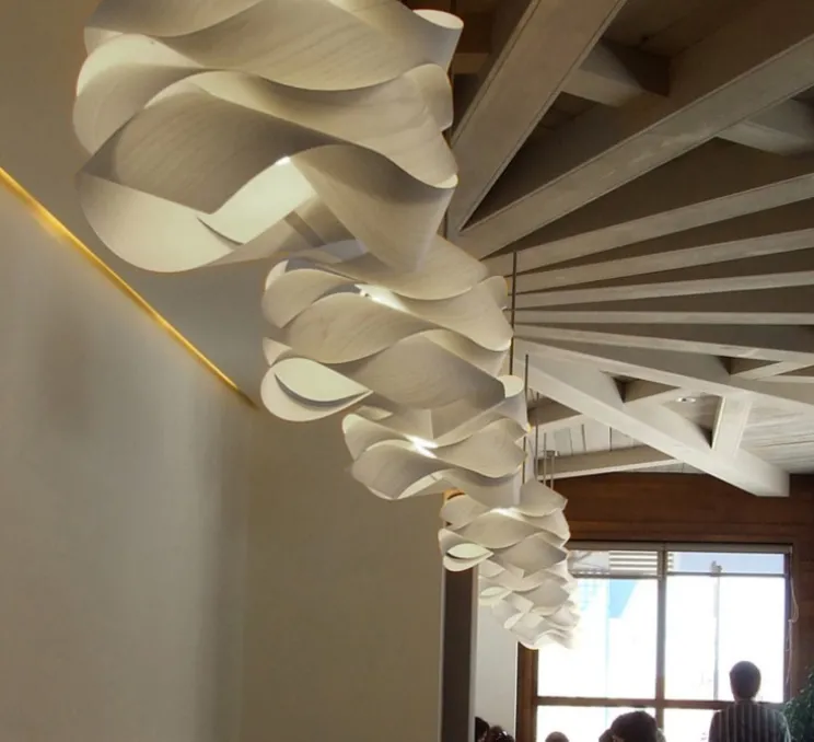 Composée d’une superposition de lamelles de bois courbées et assemblées à la main dans les ateliers LZF de Valence, la lampe Link diffuse une lumière agréable et chaleureuse. Ses courbes épurées et design font de cette lampe tourbillon une véritable source lumineuse design.