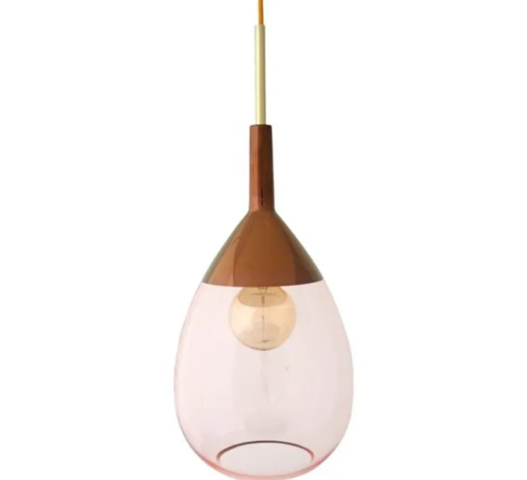 Ce luminaire nous fait penser à une énorme goute de pluie, mais celle ci apporte gaieté, chaleur et touche bohème chic dans votre salon, couloir, chambre ou cuisine. La suspension est faite de verre soufflé à la bouche vert, d’un chapeau en métal coloris or et d’un câble de 2 mètres maximum en textile.