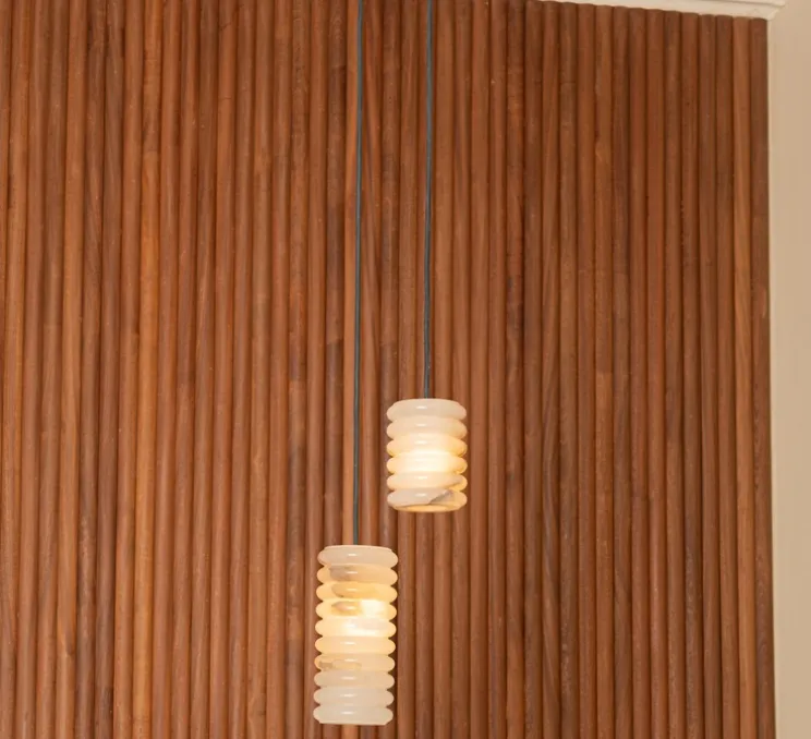 La suspension Maniko Fluta Double combine l’élégance intemporelle de l’albâtre avec des lignes épurées et contemporaines. Originaire d’Espagne, ce luminaire incarne le mariage harmonieux entre l’artisanat traditionnel et le design moderne.