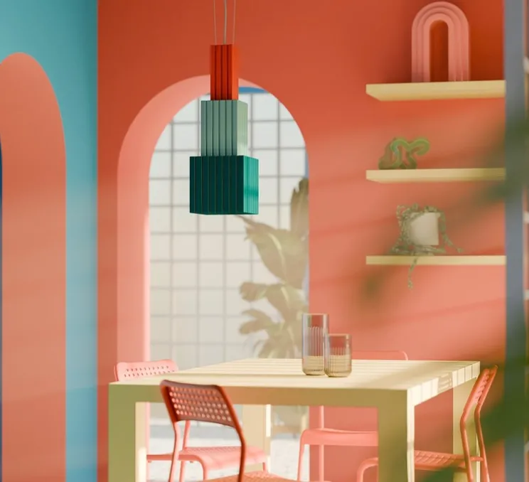 La suspension Metra de Ferroluce est bien plus qu’un simple luminaire : c’est une pièce architecturale suspendue, au caractère fort et sculptural.