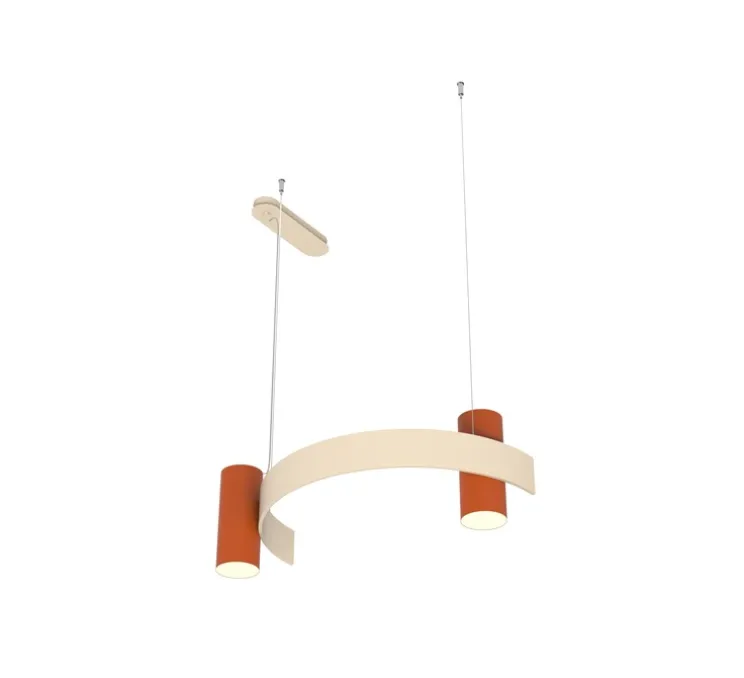 Cette suspension se distingue par une structure en arc de cercle en aluminium, avec deux cylindres contrebalançant son allure. Sa forme circulaire apporte une touche graphique, idéale au-dessus d’une table ou dans un espace de vie, pour un éclairage direct et subtil.