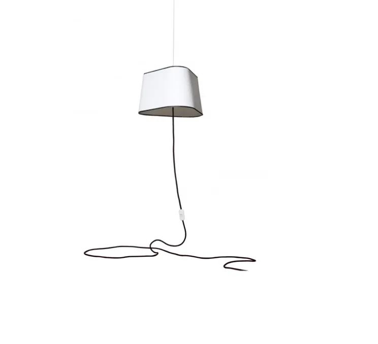 Ce dernier est suspendu au plafond par un fil en textile noir afin de mettre en avant la pureté de la suspension. Son design triangulaire découpe l’espace de manière architectural et offre un design épuré. Elle est adaptée aux espaces d’intérieur, notamment dans un salon, une chambre ou un couloir.