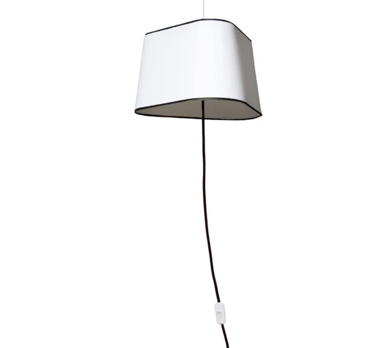 Sa simplicité et sa légèreté font d’elle un des éléments phares des collections Designheure. Elle est constituée d’un abat-jour blanc en tissu laqué de forme triangulaire et de bordures noires.