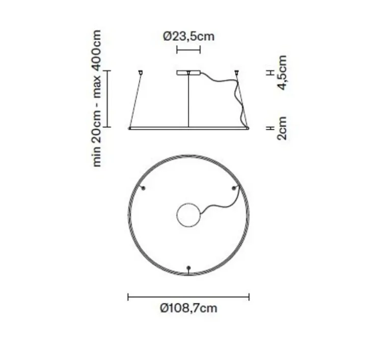 Cette suspension possède un câble de 4m avec une rosace de 23.5cm de diamètre.