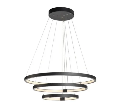 Ce luminaire à trois anneaux et au design élégant et moderne attire tous les regards. Il est idéal non seulement pour l’hôtellerie et la restauration, mais également pour les intérieurs privés tels qu’un salon ou une cage d’escalier.
