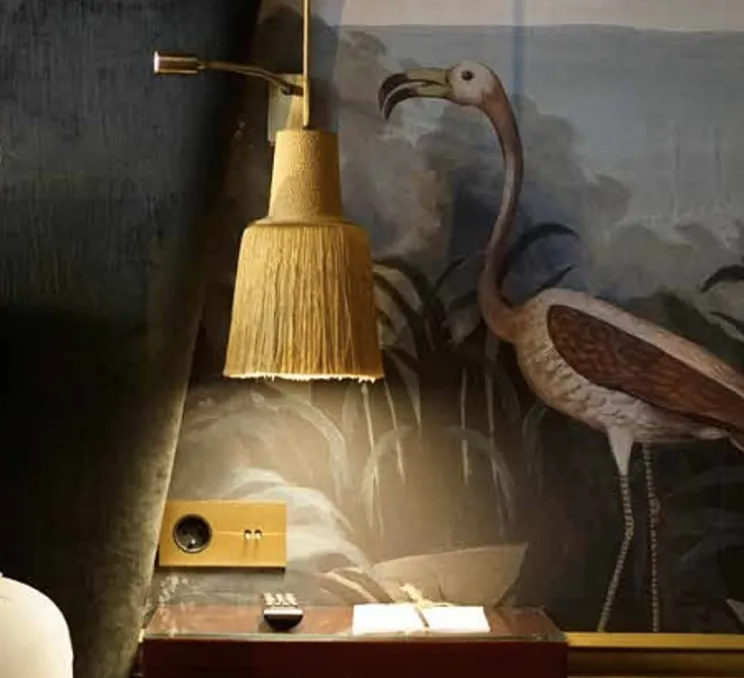 Cette suspension atypique, avec le tissu qui la recouvre et ses franges or, peut s’adapter à toutes les pièces de votre intérieur.