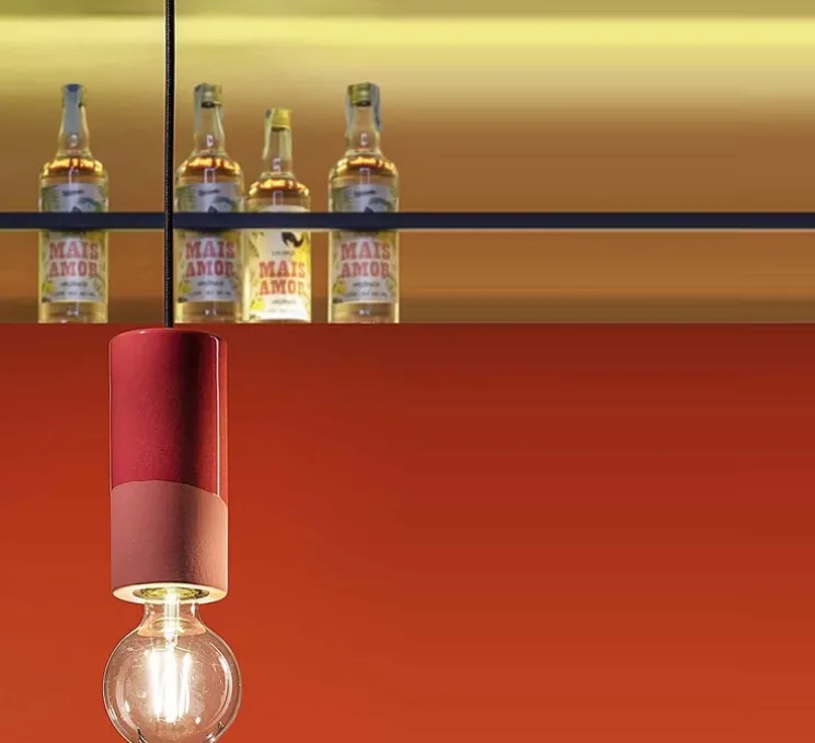 Minimaliste, la suspension Pi Cilindro rouge imaginée par Giorgio Biscaro pour Ferroluce, est la touche déco qu’il vous manquait.