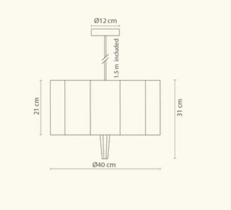 Rain se décline en suspension et lampe à poser, mesure 40cm de diamètre pour 30cm de hauteur.