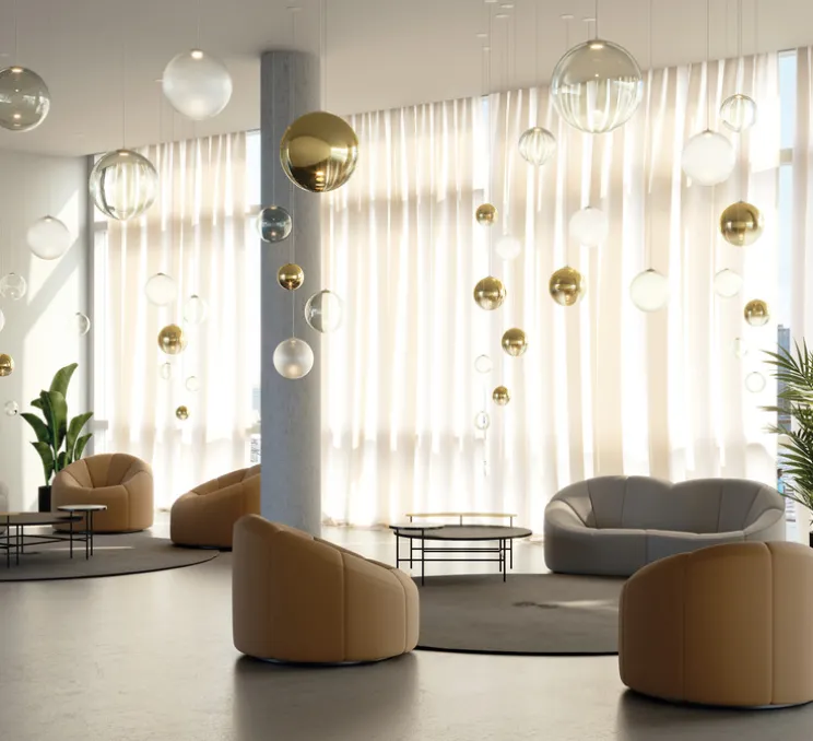 Elle peut être installée seule ou en grappe pour un effet encore plus spectaculaire, grâce à ses différentes tailles et finitions disponibles.