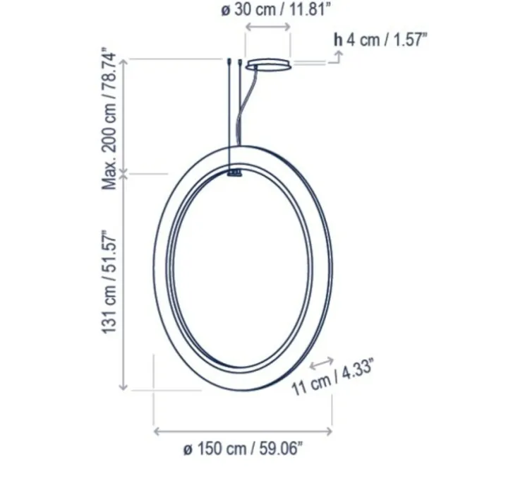 Le luminaire mesure 150cm de diamètre.