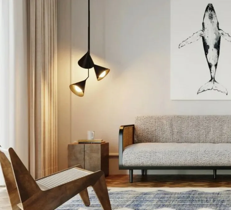 Sur le plan esthétique, la Rubi Trio séduit par son design noir mat et or, avec des finitions en verre opale et en métal. Conseil décoratif : en tant que lustre Art Déco, elle apporte une touche contemporaine à votre espace, ajoutant une élégance sophistiquée à toute pièce. La forme conique de la suspension et ses détails soignés la rendent idéale pour éclairer avec style, créant une atmosphère classique et contemporaine.