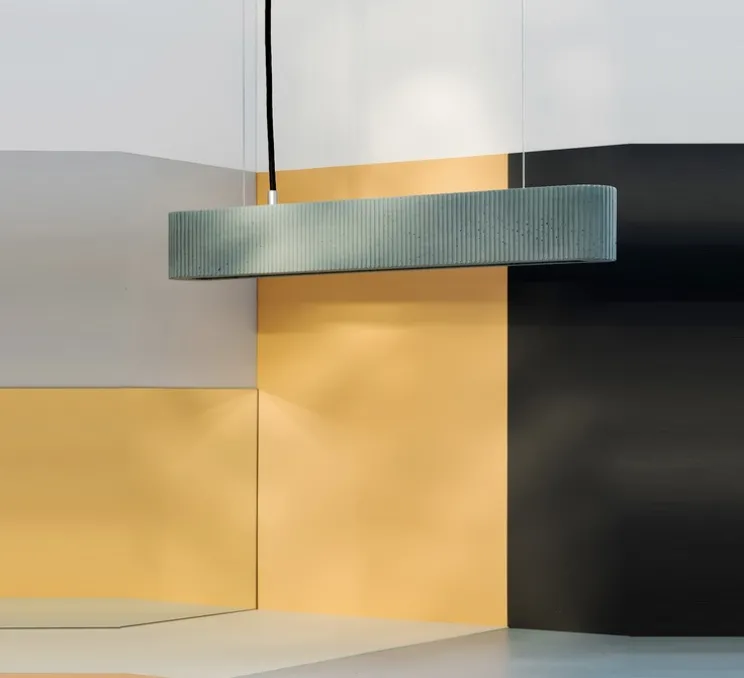 La suspension [S4] marque les esprits par sa forme longiligne (63 cm de longueur) et sa surface cannelée. Son design minimaliste et moderne lui permet de s’adapter à tout type de pièces et décoration. Son abat-jour en béton laisse apparaître un module led d’une capacité de 2700 k et 1500 lumens, créant ainsi une belle et puissante lumière chaude.