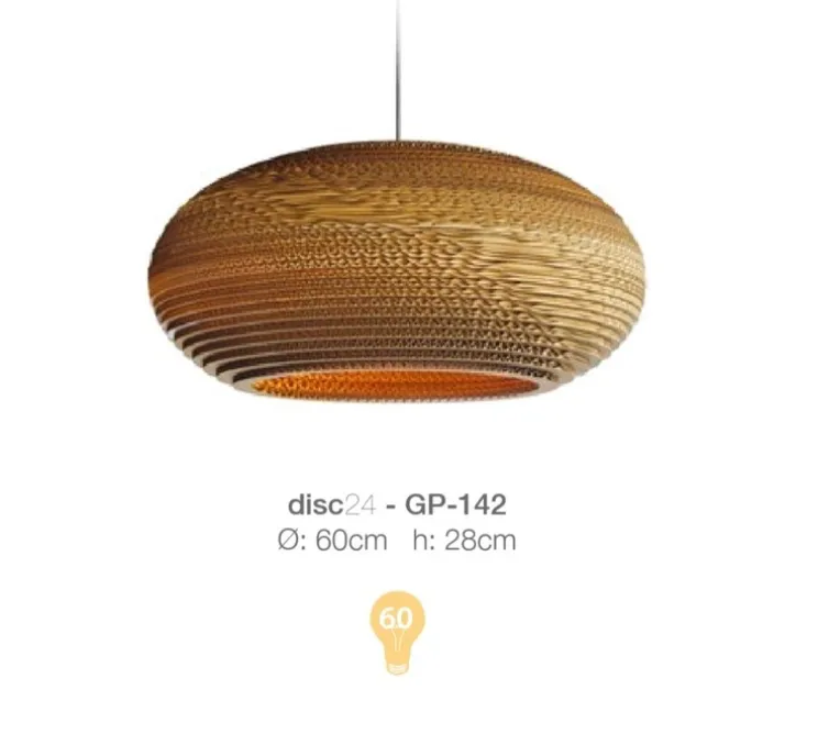 La suspension Disc est constituée de fines strates de carton découpées au laser et assemblées à la main dans les studios à Amsterdam.