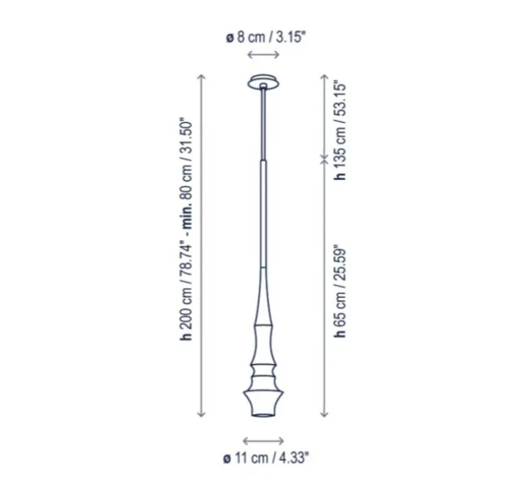 La suspension mesure 65cm de hauteur et 11cm de diamètre.