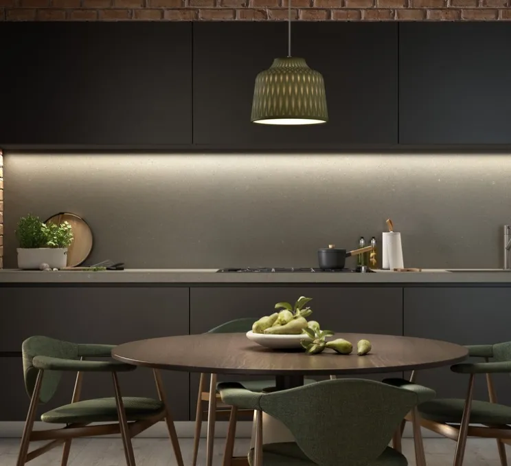 Voici la suspension Soft S/30 gris olive imaginée par Danos Salgados pour la maison espagnole Bover.