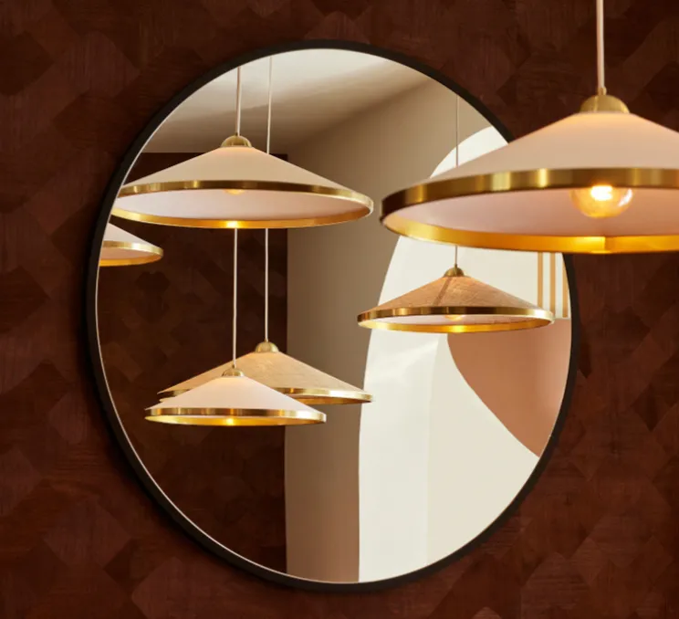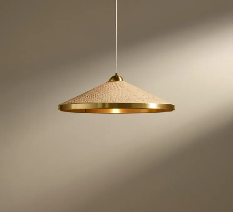 Cette suspension associe la rabane et le laiton dans un design à la fois léger et structuré. Inspirée des ambiances parisiennes, elle diffuse une lumière douce et homogène, créant une atmosphère chaleureuse et élégante dans chaque espace.