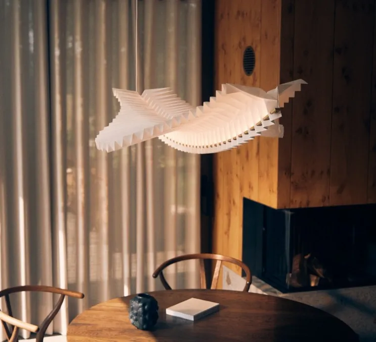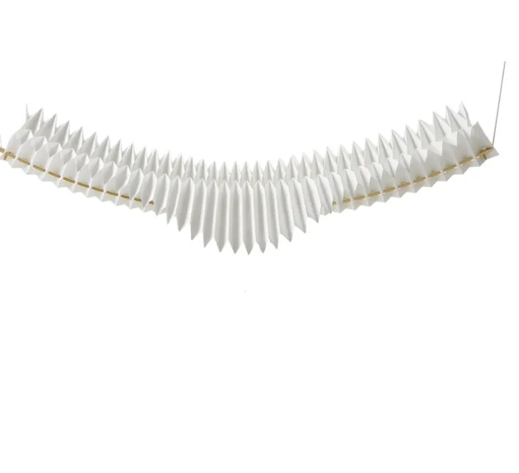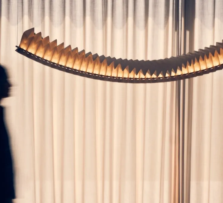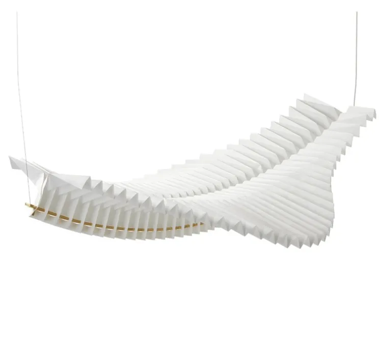 Inspirée des techniques japonaises de l’origami, cette pièce sculpturale se distingue par sa forme fluide et aérienne, créant une sensation de légèreté et d’élégance. Son design épuré et organique en fait une véritable œuvre d’art lumineuse qui sublime aussi bien les espaces résidentiels que professionnels.