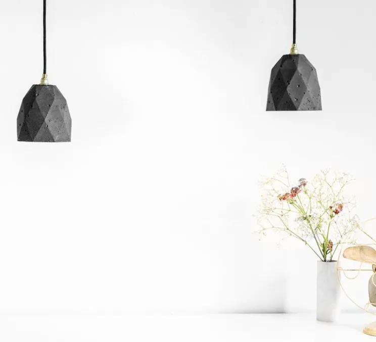 Coulée et fabriquée à partir de béton, cette suspension combine une couleur or noble avec le gris contrastant du béton brut.