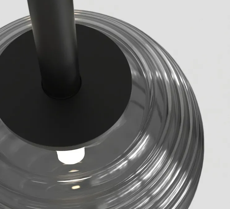Suspension, Tacoma, noir mat, abat-jour Tacoma Ribbed Glass fumé, IP44, Ø13,5cm, H185cm – Astro