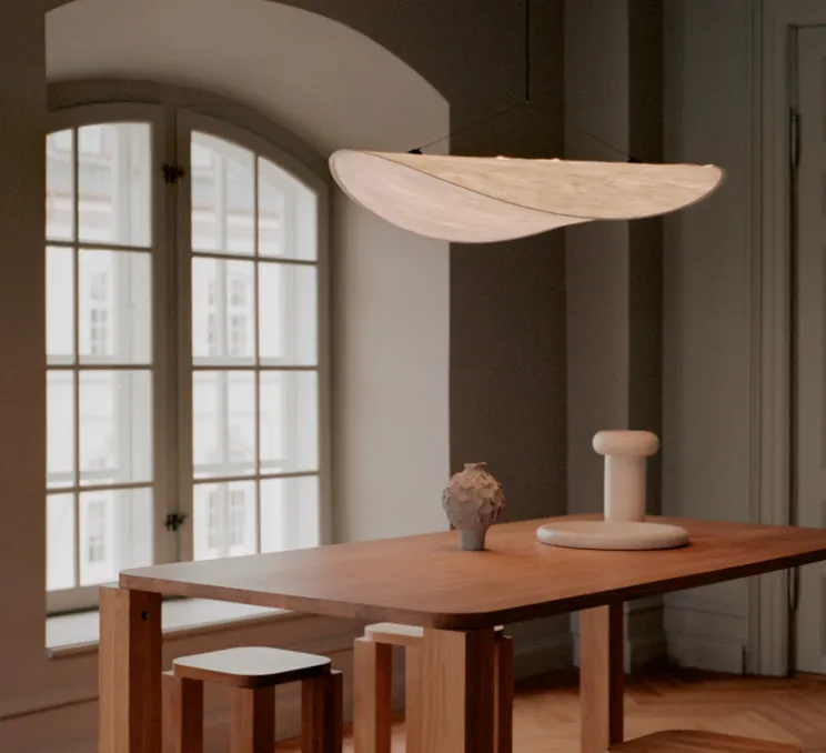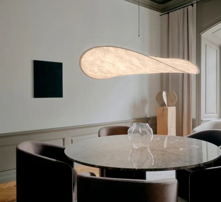 Les designers Panter & Tourron présentent leur grande suspension Tense édité par New Works.
