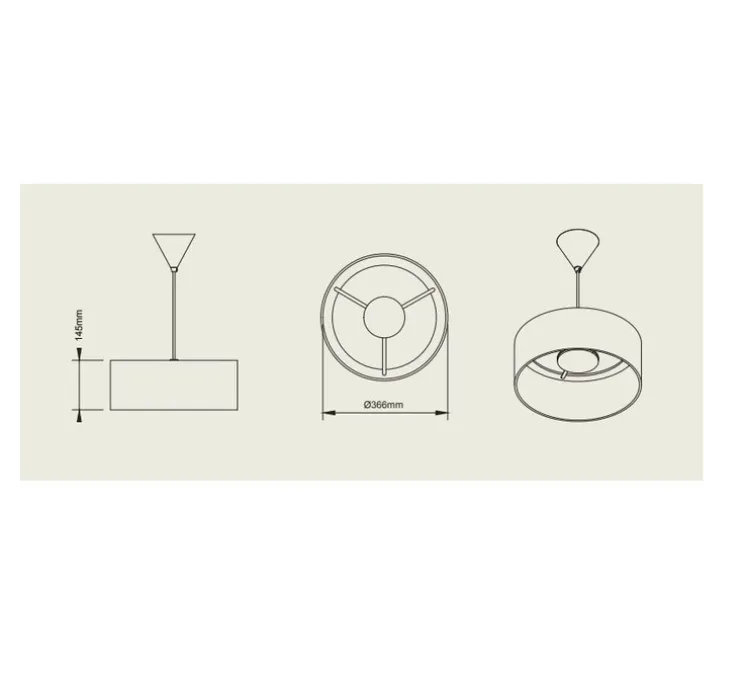 La suspension Terra Wide mesure 14,5cm de hauteur et 36,6cm de diamètre. L’ampoule LED est intégrée avec une puissance de 15W, une température de 2700K et un flux lumineux de 1200lm. Driver inclus et variable TRIAC. L’indice de protection est IP44, autrement dit, il est possible d’installer le luminaire en intérieur et extérieur. Le câble noir et la rosace noire sont inclus.