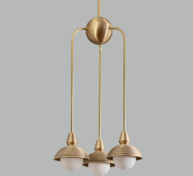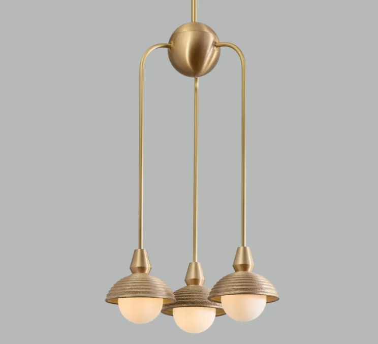 Créée par Robbie Llewellyn et Adam Yeats pour la marque Bert Franck, la suspension à 3 globes s’impose comme une pièce maîtresse de la collection Eos.