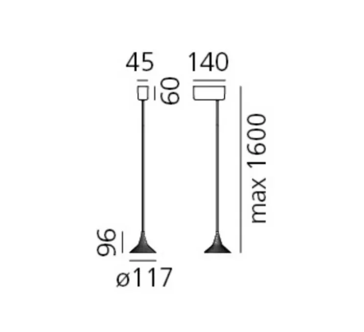Le luminaire mesure 9,6cm de hauteur et 11,7cm de diamètre avec un câble de 160cm.