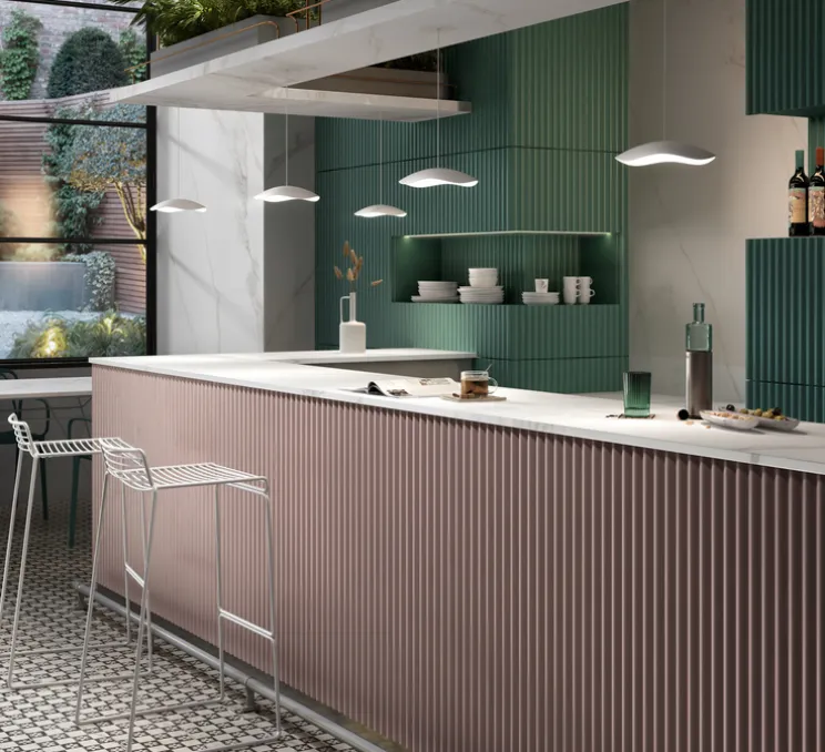 Le concept du luminaire est basé sur une tête lisse qui dessine un contour ondulé sur son périmètre, en net contraste avec le corps interne du luminaire, qui nous rappelle les petites oscillations douces que les courants marins forment sur les rivages de la Méditerranée.