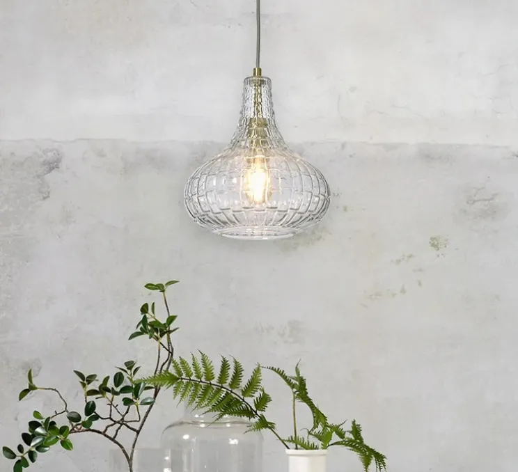 Ce luminaire d’intérieur décoratif se distingue par son design raffiné alliant transparence et touches dorées, apportant un charme Art Déco à votre espace.