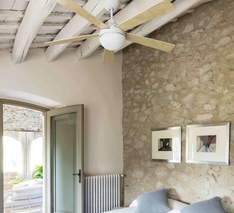Afin d’obtenir un plus grand confort en réduisant sa consommation d’énergie, le ventilateur Izaro dispose d’une fonction d’inversion été et hiver. En effet, en été vous gardez votre pièce fraîche en tournant le ventilateur dans le sens inverse des aiguilles d’une montre. En revanche, en hiver, tournez le ventilateur dans le sens des aiguilles d’une montre et l’air chaud circule en faisant descendre la chaleur stockée au plafond.